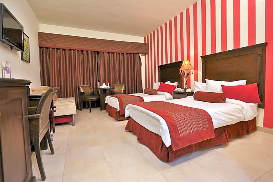 Offering free toiletries and bathrobes, this twin room includes a private bathroom with a bath, a shower and a bidet. The air-conditioned twin room offers a flat-screen TV with cable channels, a tea and coffee maker, a seating area, a wardrobe as well as garden views. The unit offers 2 beds.